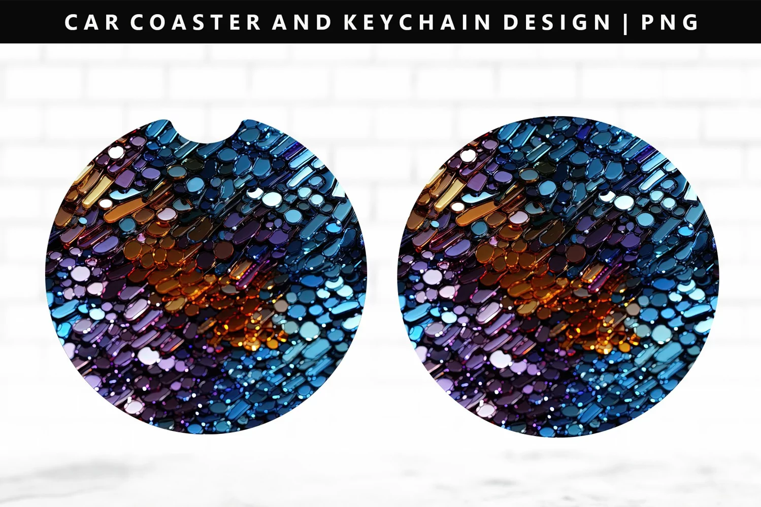Sequin Keychain And Car Coaster Sublimation Design