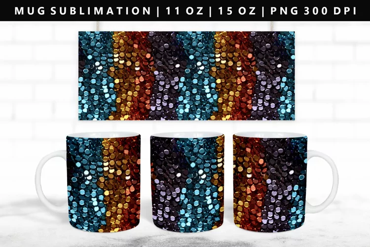 Sequin 11oz, 15oz Mug Sublimation | Mug Wrap PNG example image 1