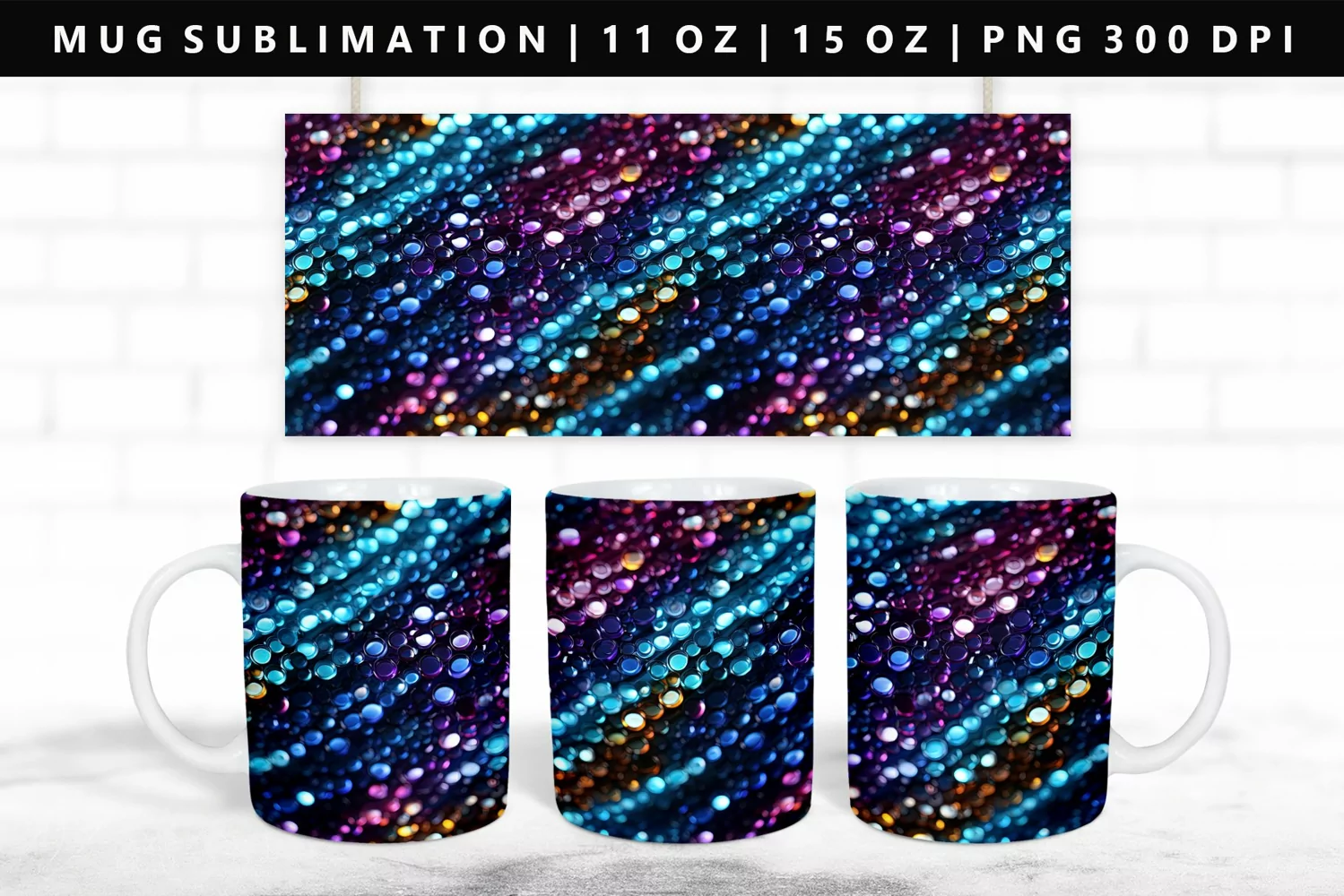 Sequin 11oz, 15oz Mug Sublimation | Mug Wrap PNG example image 1