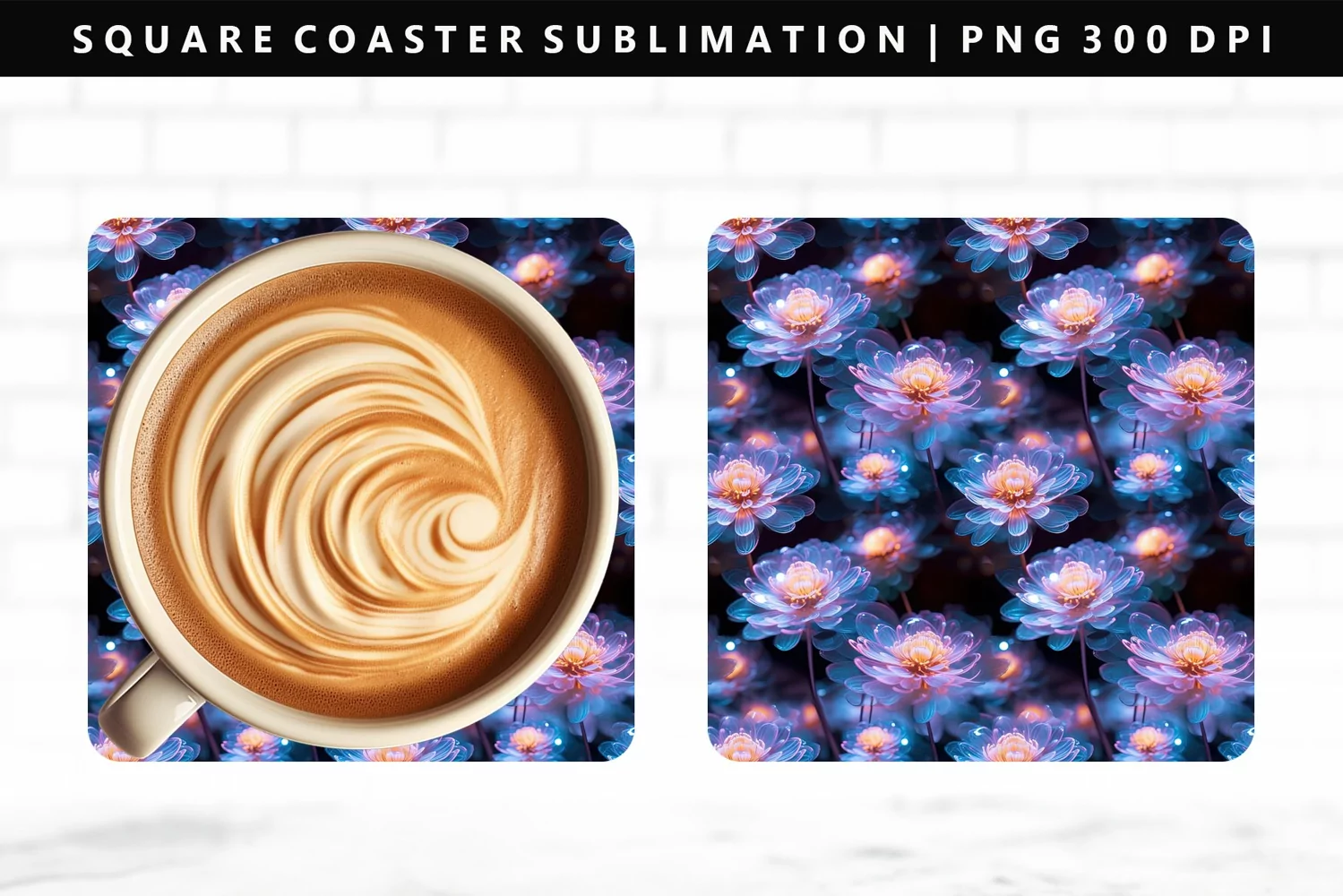 Flower Square Coaster Design | Square Coaster PNG example image 1