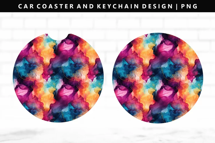 Alcohol Ink Keychain And Car Coaster Sublimation Design