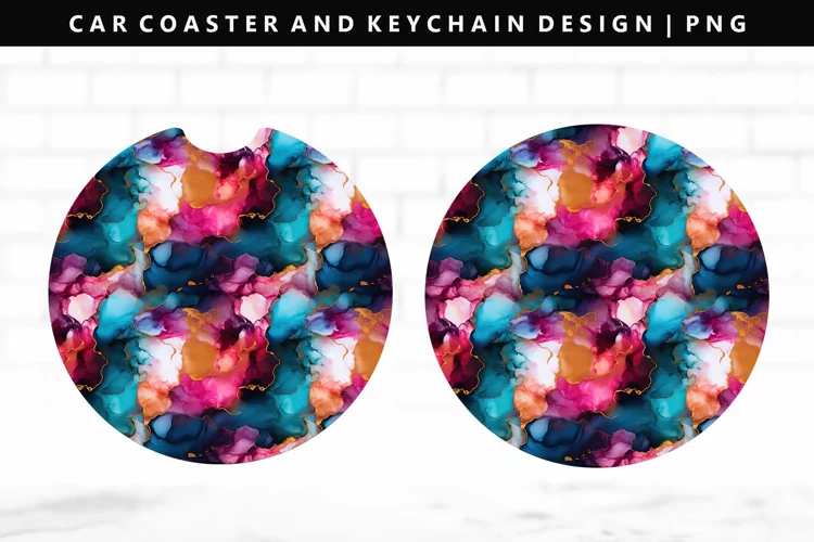 Alcohol Ink Keychain And Car Coaster Sublimation Design