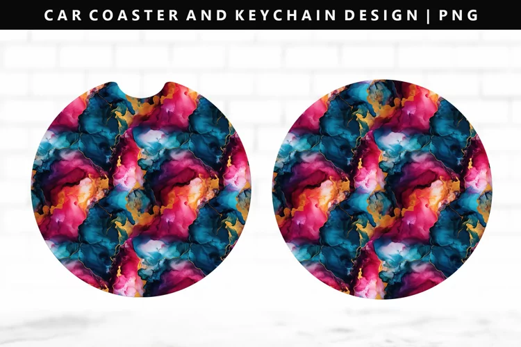 Alcohol Ink Keychain And Car Coaster Sublimation Design