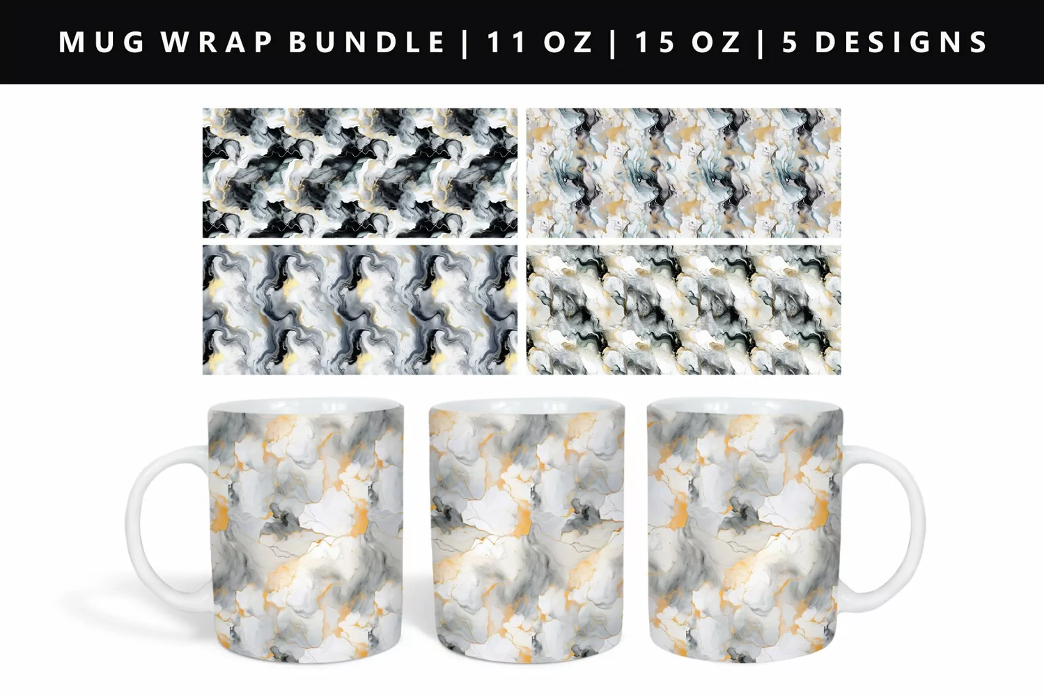 • 5 PNG files for 11oz mug (8.5 x 3.5 inches 300 DPI)