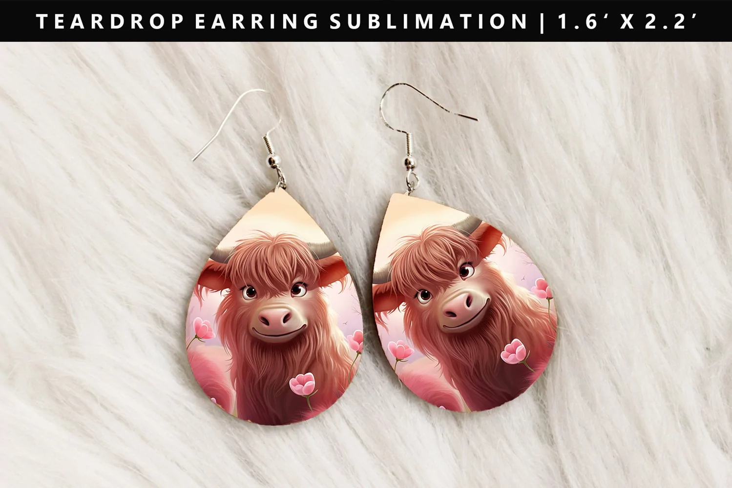 Similar Design Products to Highland Cow Teardrop Earring Sublimation PNG Design