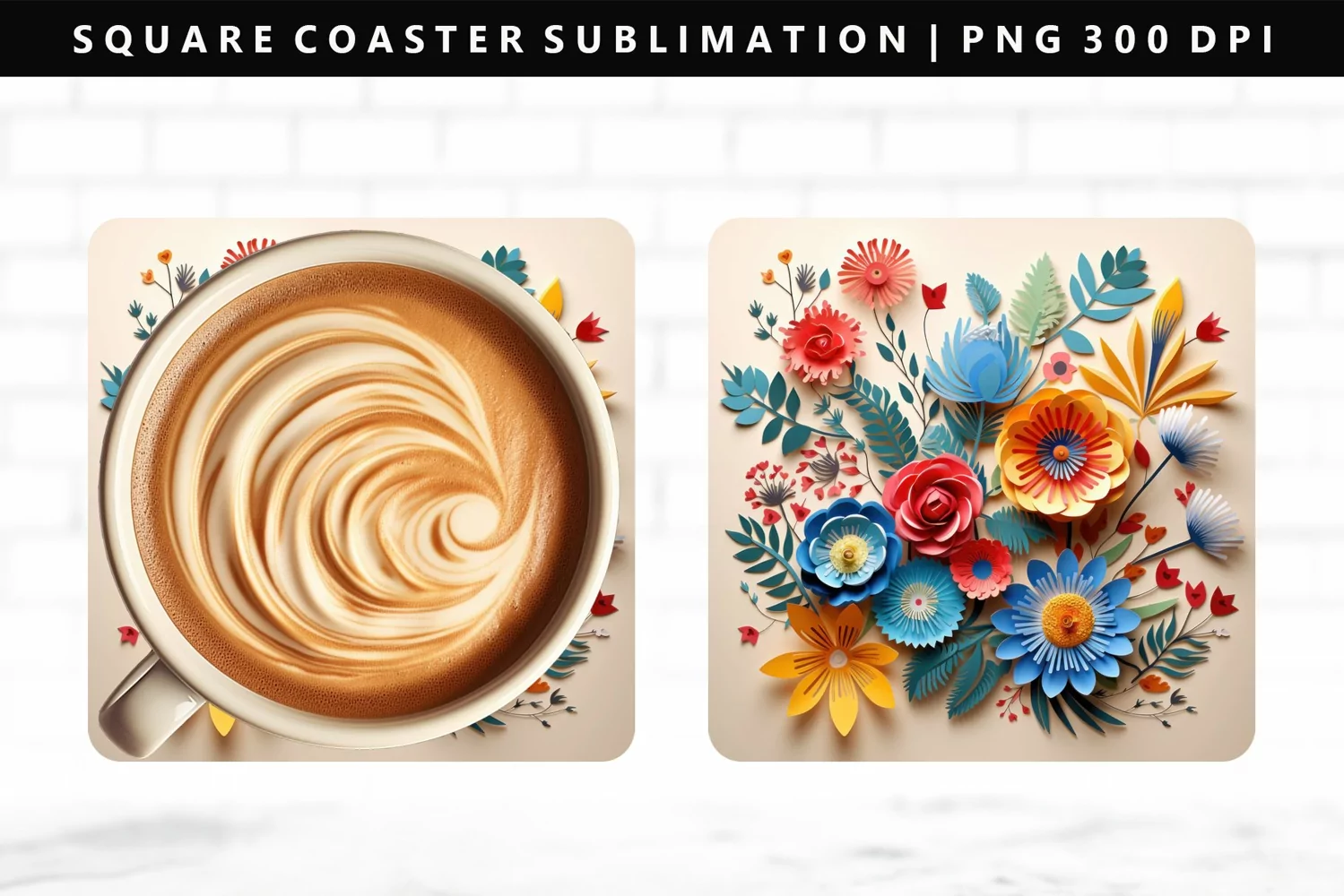 Flower Square Coaster Design | Square Coaster PNG example image 1