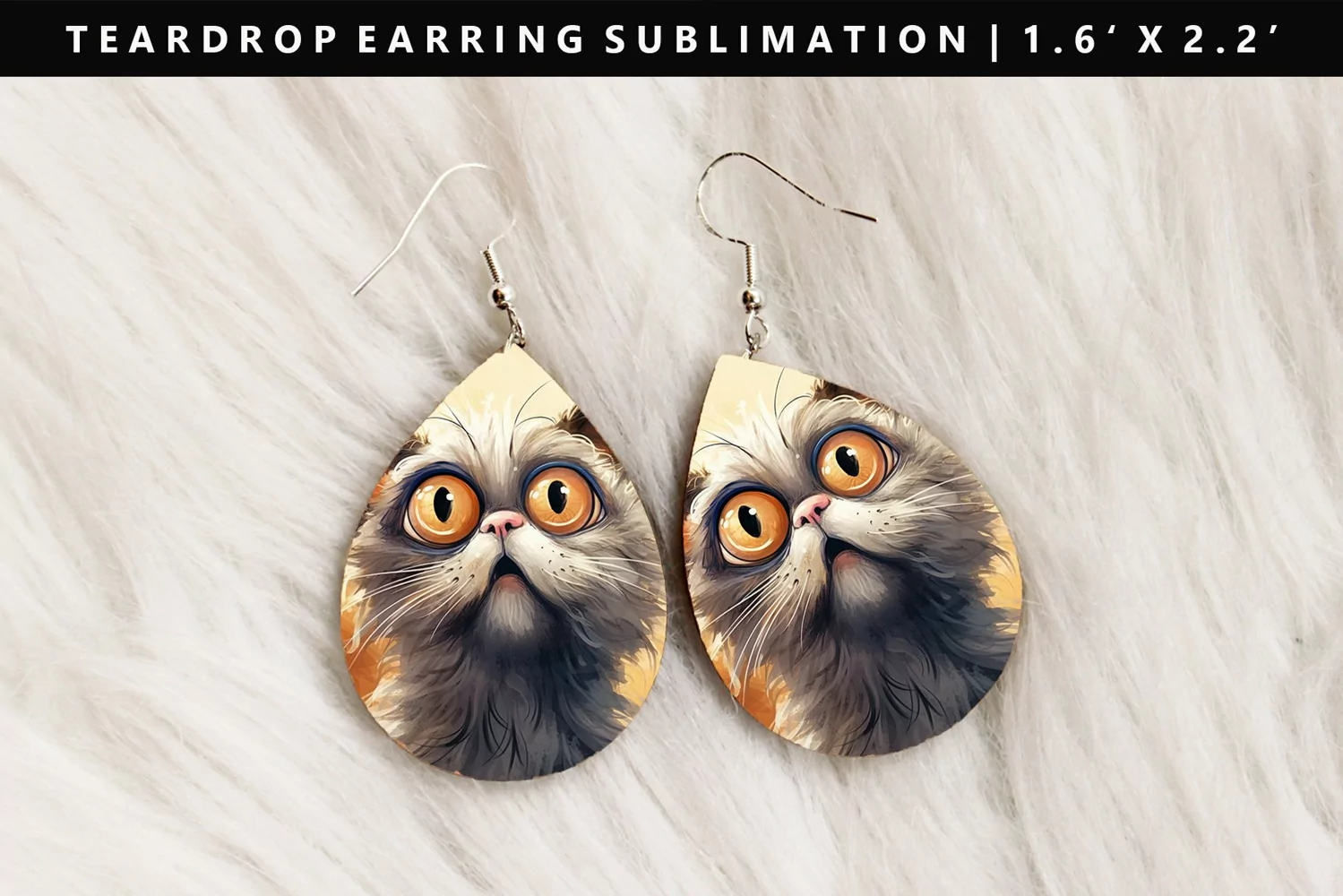 Funny Cat Teardrop Earring Sublimation PNG Design