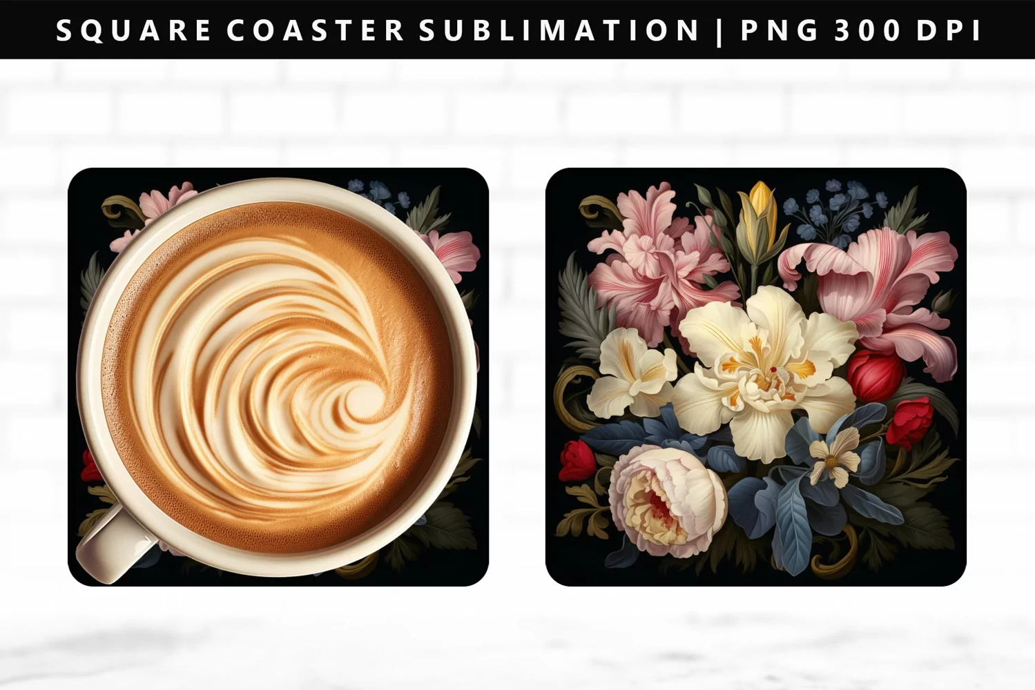 Flower Square Coaster Design | Square Coaster PNG example image 1