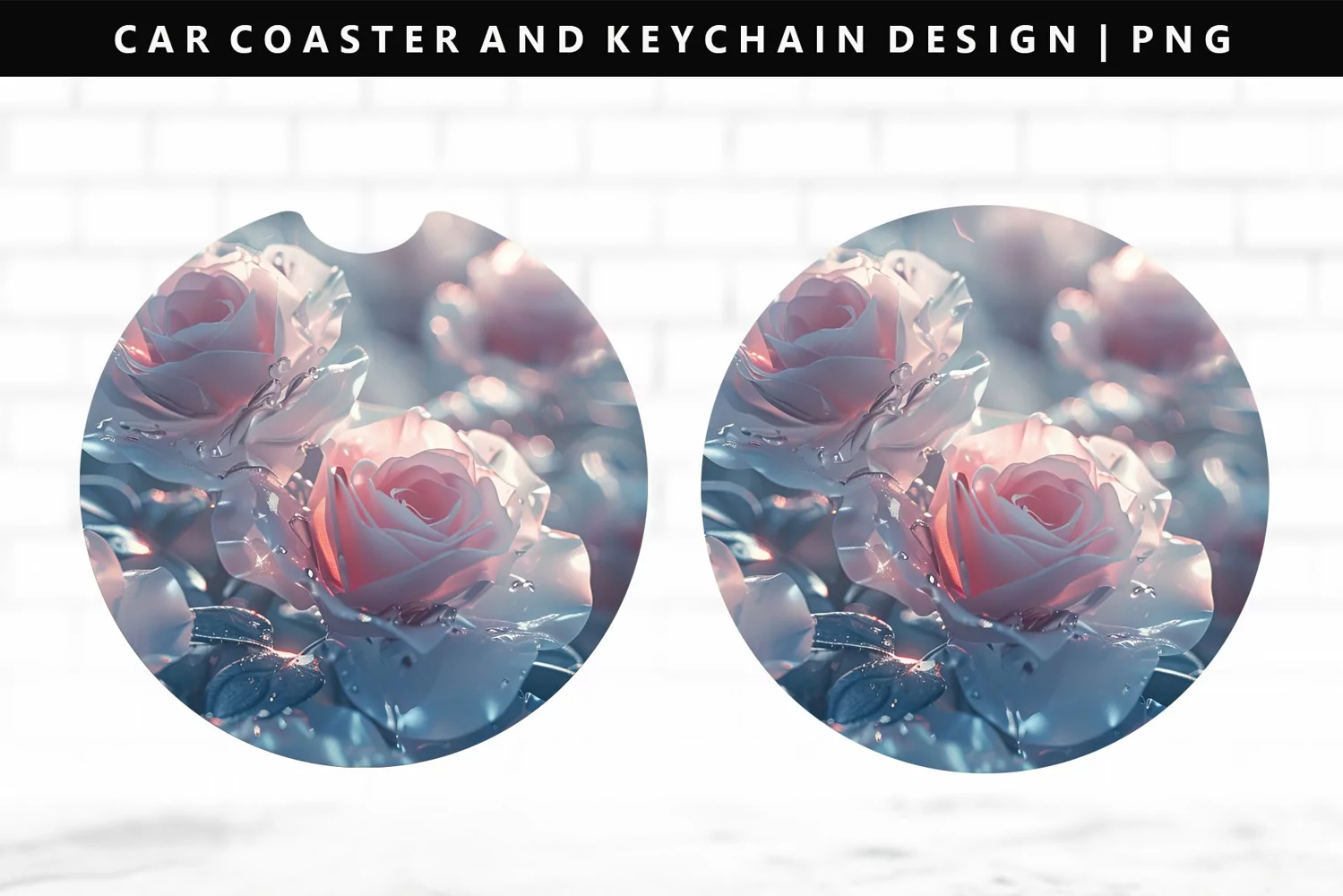 Flower Keychain And Car Coaster Sublimation Design example image 1