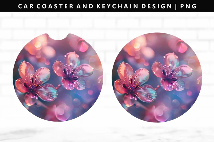 Flower Keychain And Car Coaster Sublimation Design