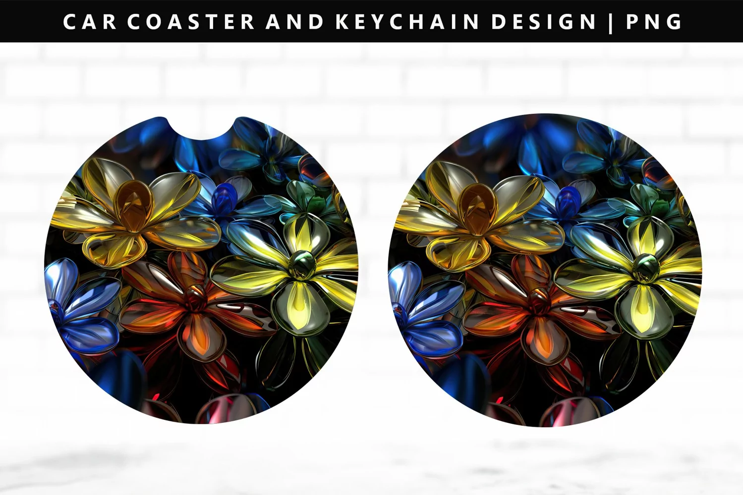 Flower Keychain And Car Coaster Sublimation Design example image 1
