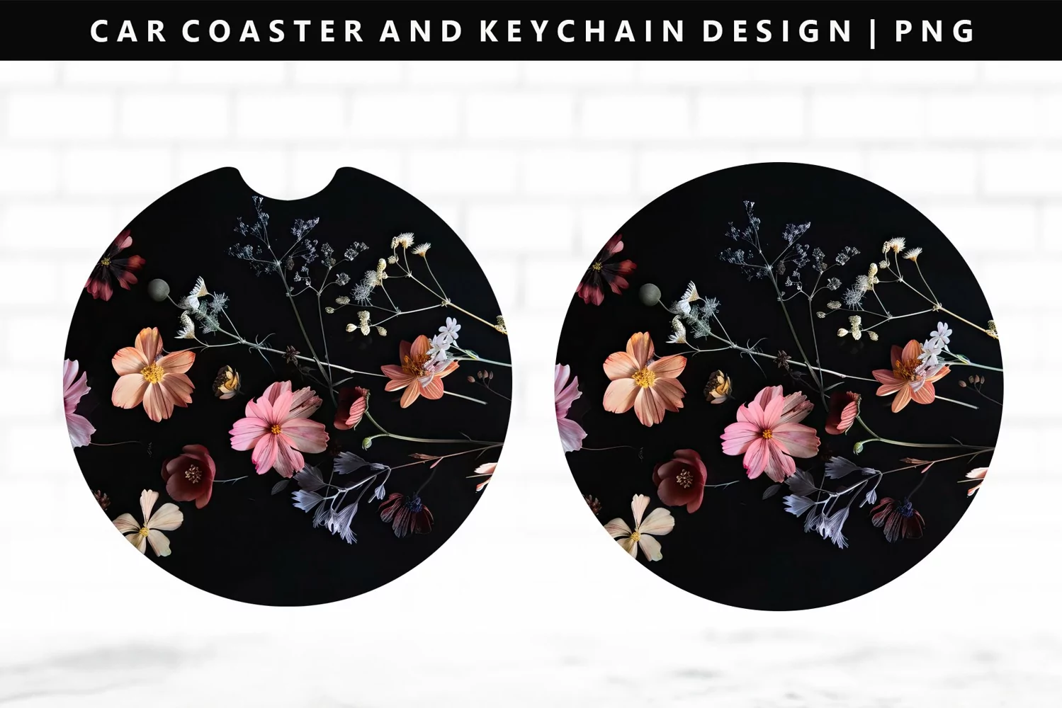 Flower Keychain And Car Coaster Sublimation Design example image 1