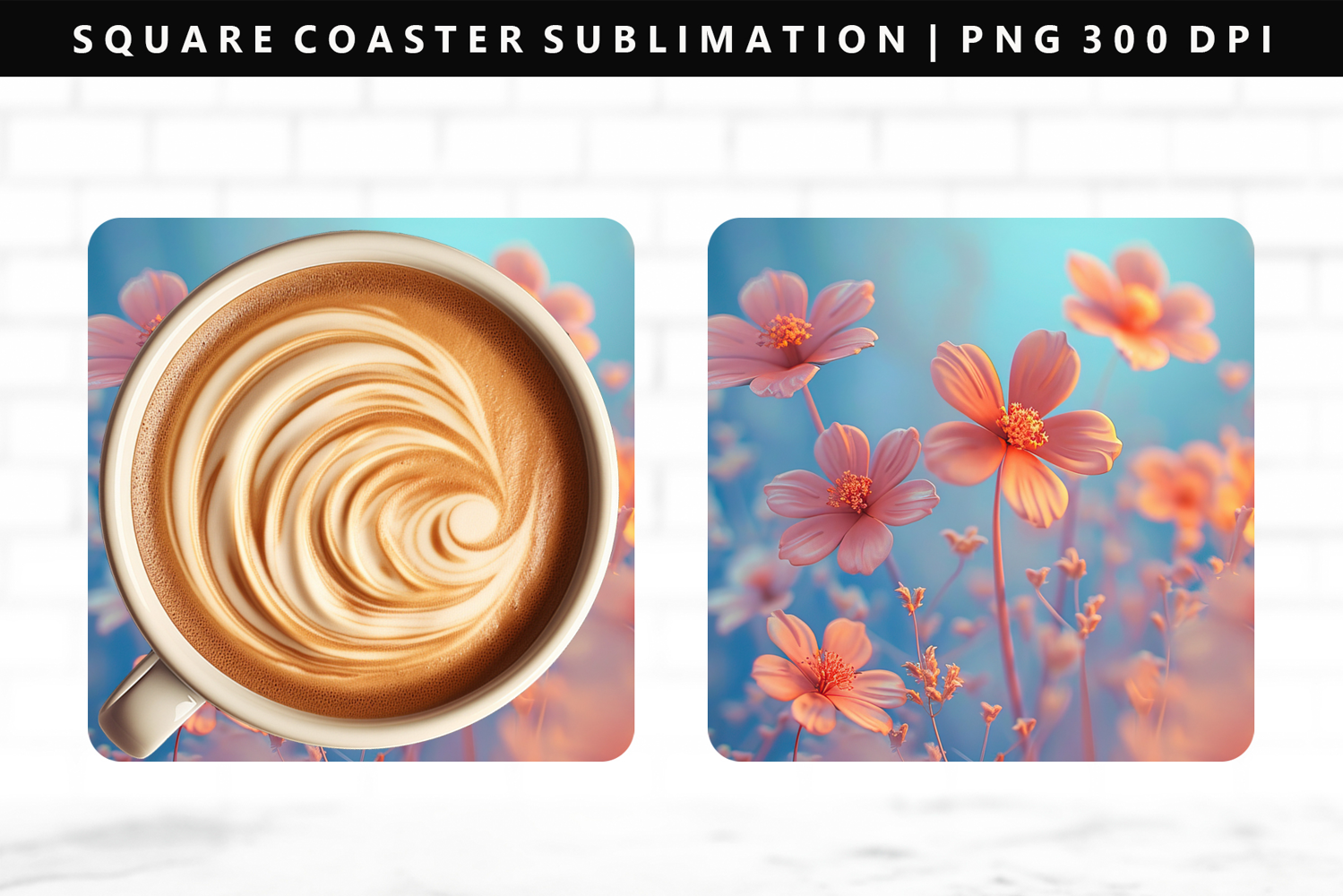 Flower Square Coaster Design | Square Coaster PNG example image 1