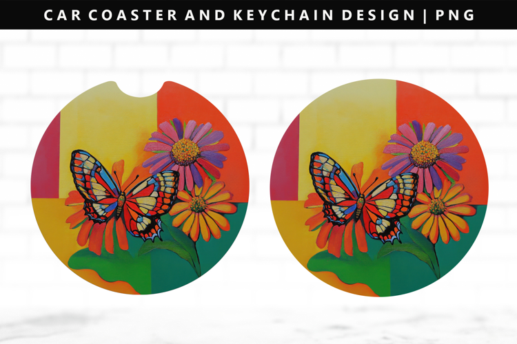 Butterfly Keychain And Car Coaster Sublimation Design example image 1