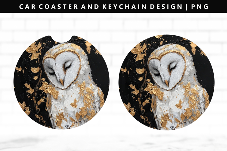 Owl Keychain And Car Coaster Sublimation Design example image 1