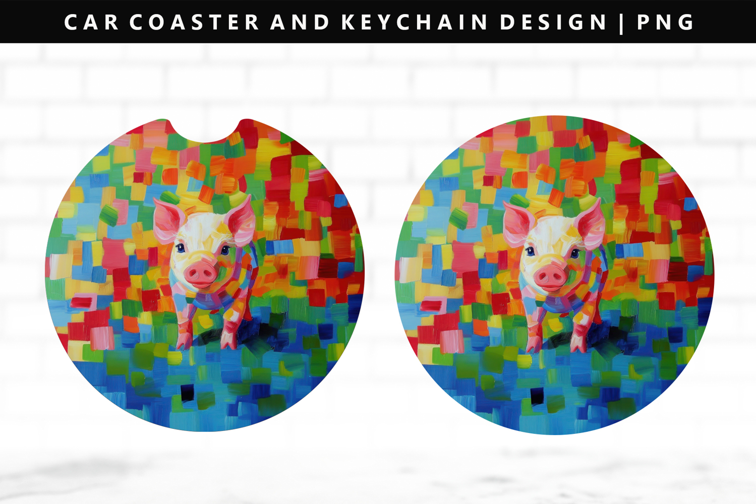 Pig Keychain And Car Coaster Sublimation Design