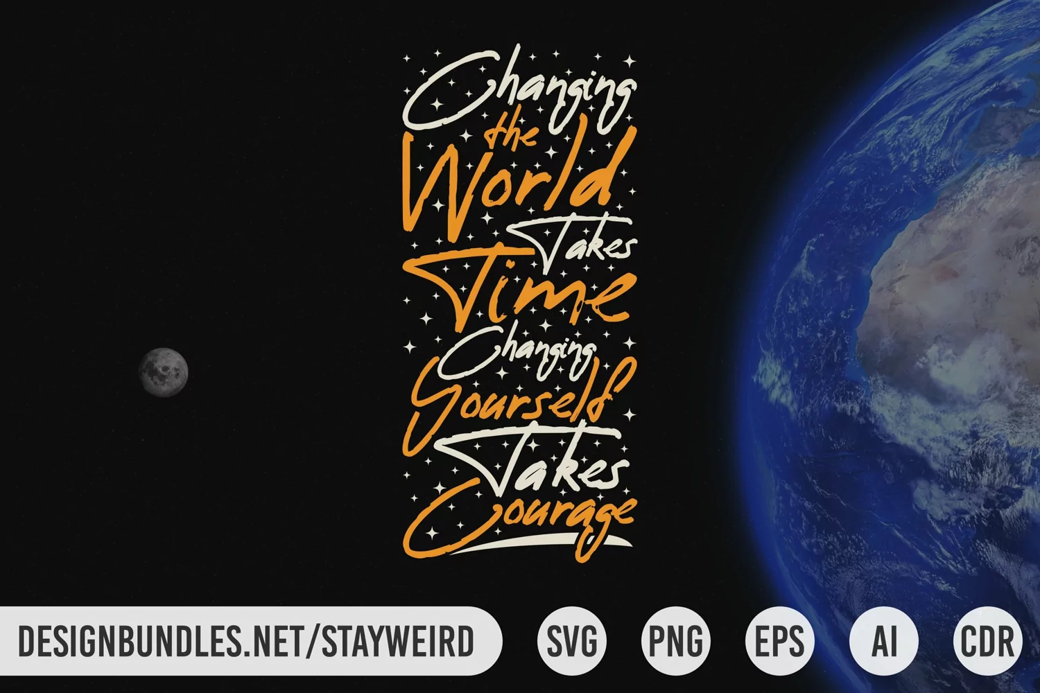 This Changing the World Takes Time, Changing Yourself Take Courage Motivational Quote Design is Perfect for Print and Merchandising.