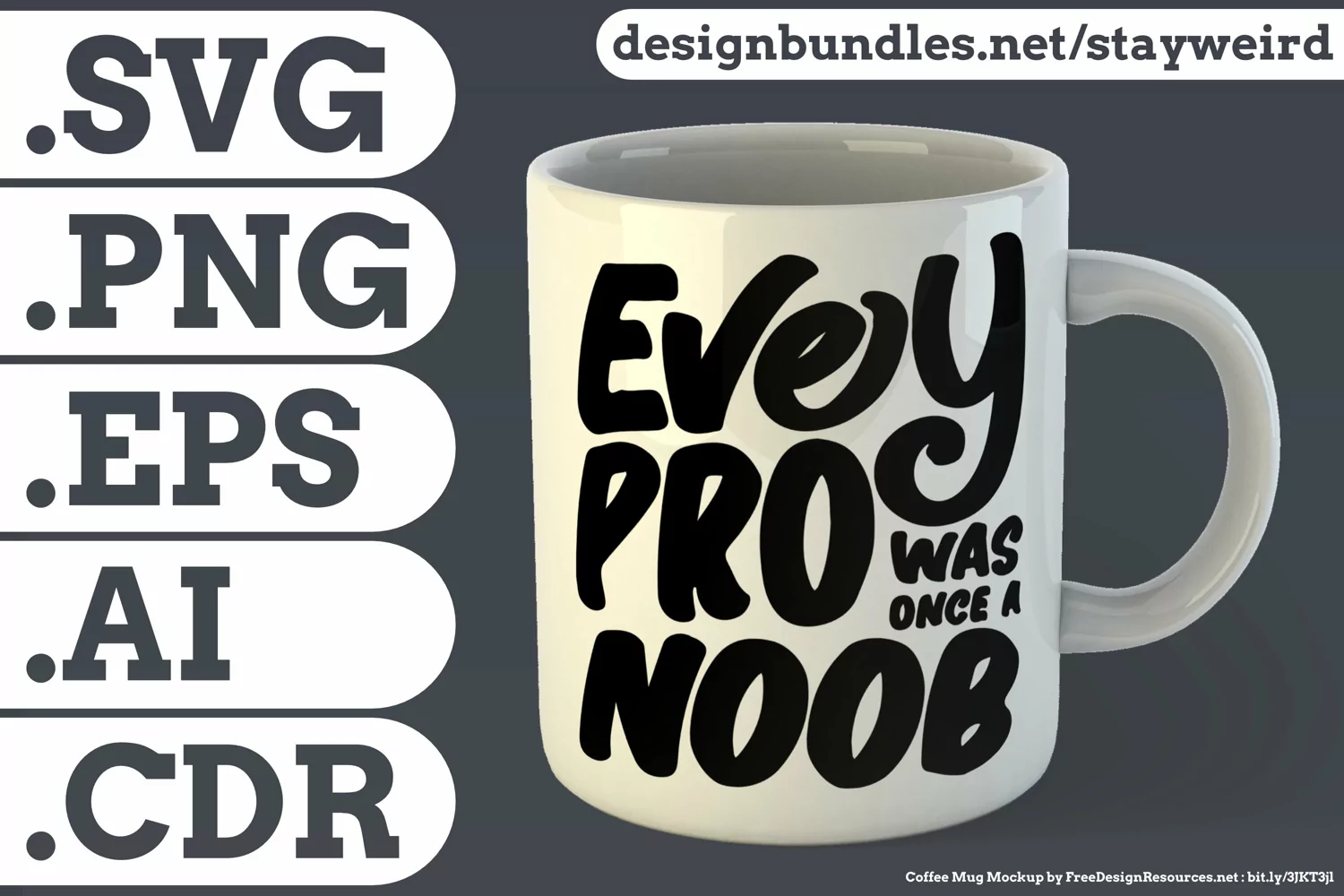 Every Pro was Once a Noob Motivational Quote Design for Mug TShirt or Poster