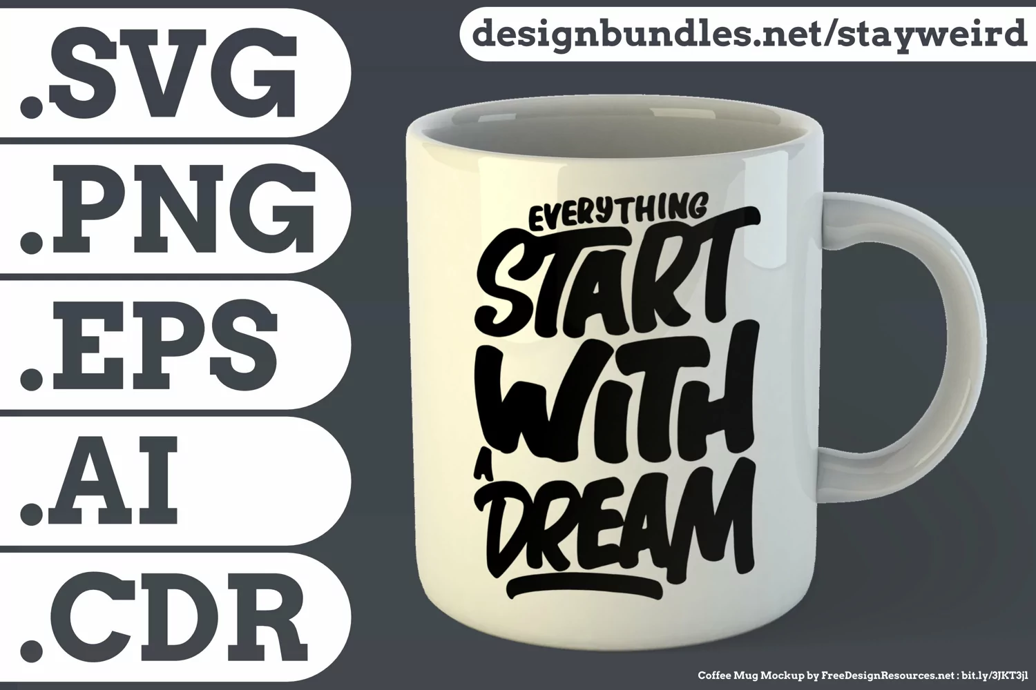 Everything Start With a Dream Motivational Quote Design for Mug TShirt or Poster