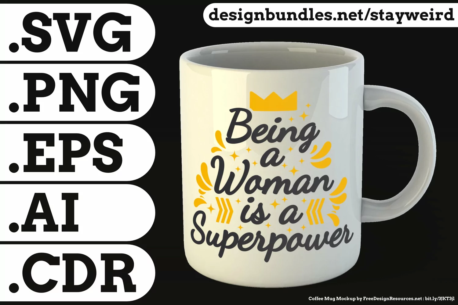 Being a Woman is a Superpower Quote Design for Mugs TShirt or Poster Available in SVG PNG EPS AI CDR