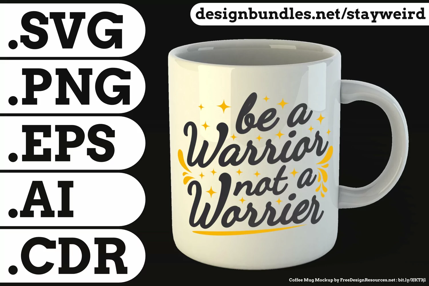 Be A Warrior Not A Worrier Quote Design for Mugs TShirt or Poster Available in SVG PNG EPS AI CDR