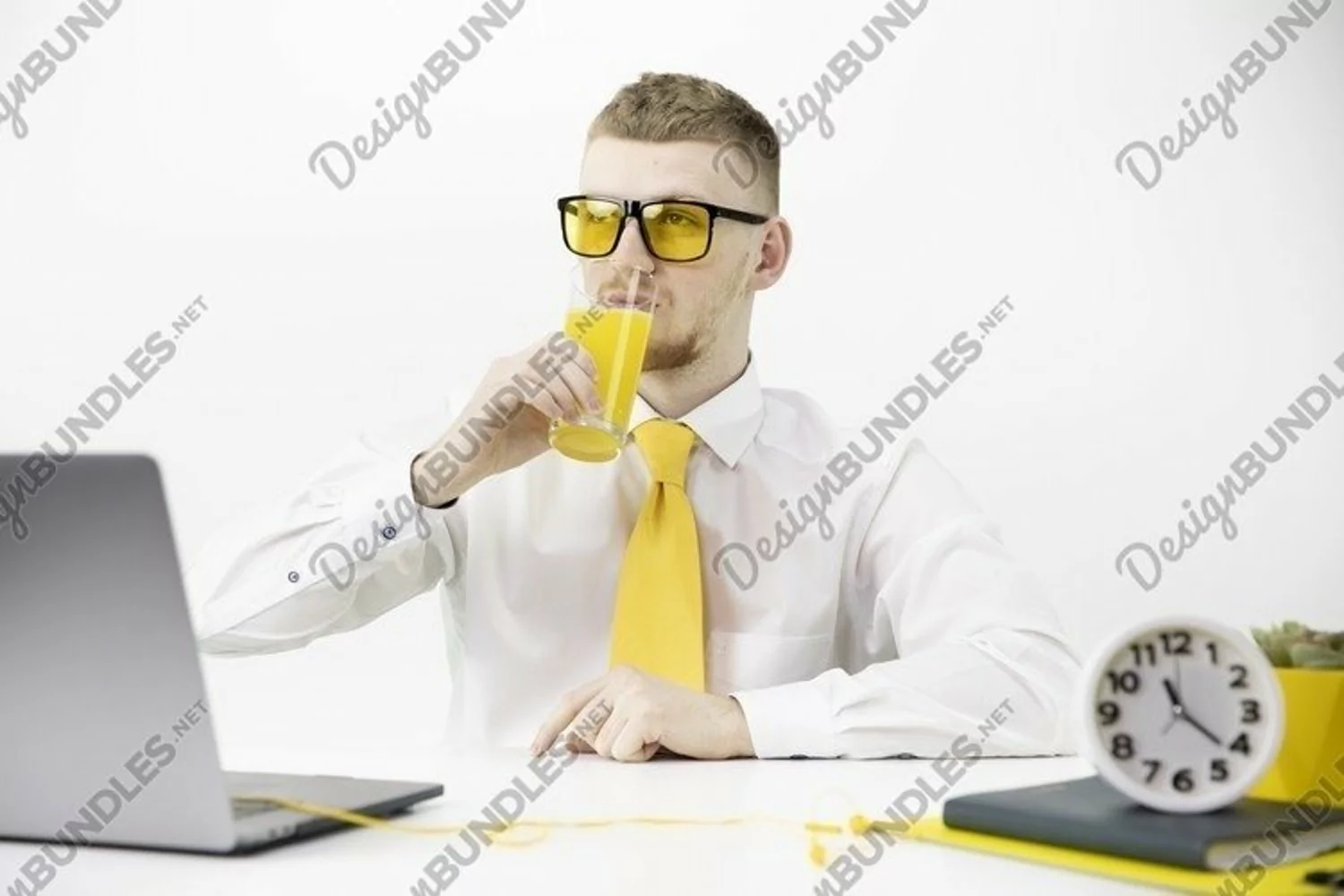 Similar Design Products to Handsome male office worker drinks orange juice