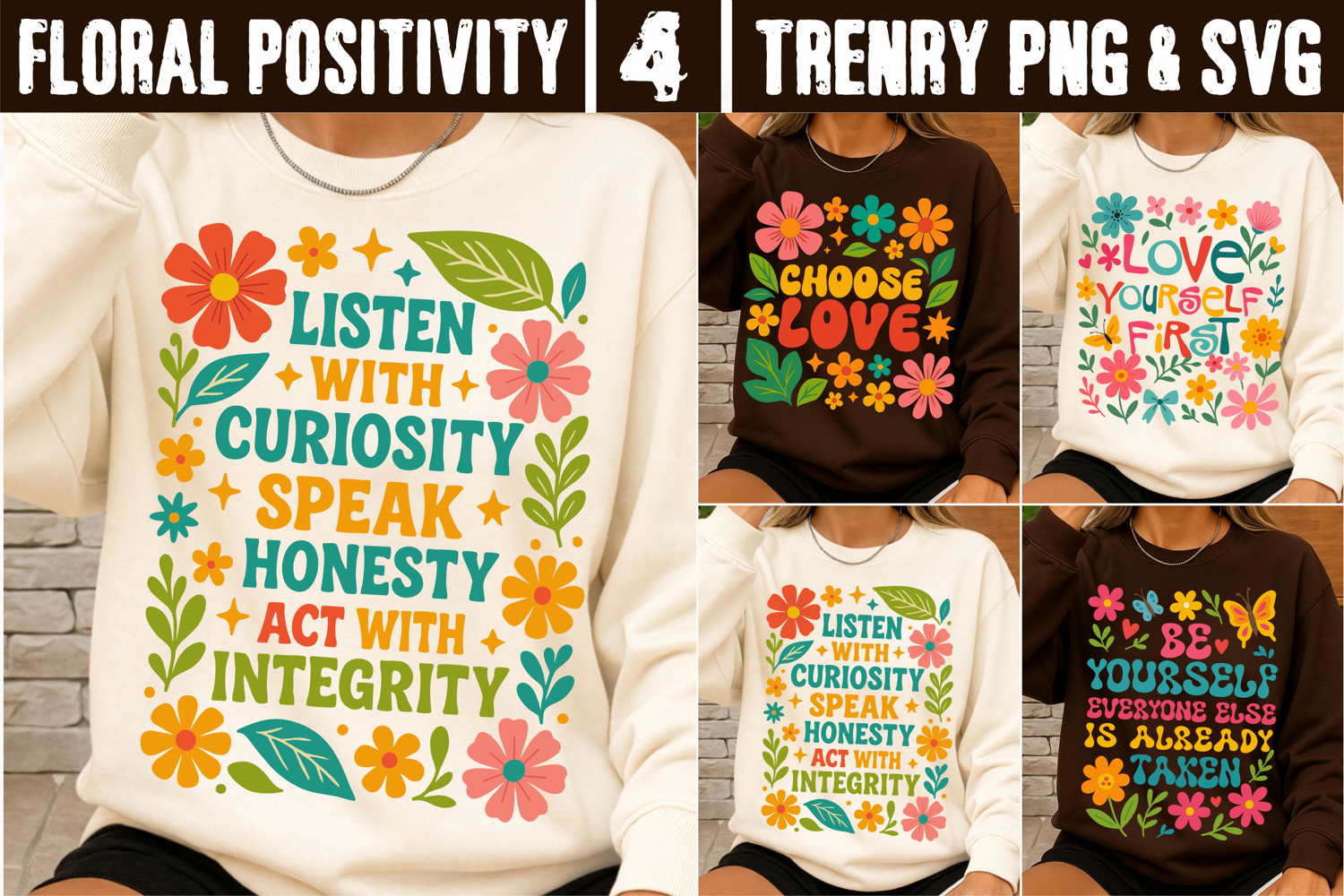 Similar Design Products to Floral Positivity Quote SVG Colorful Affirmation PNG