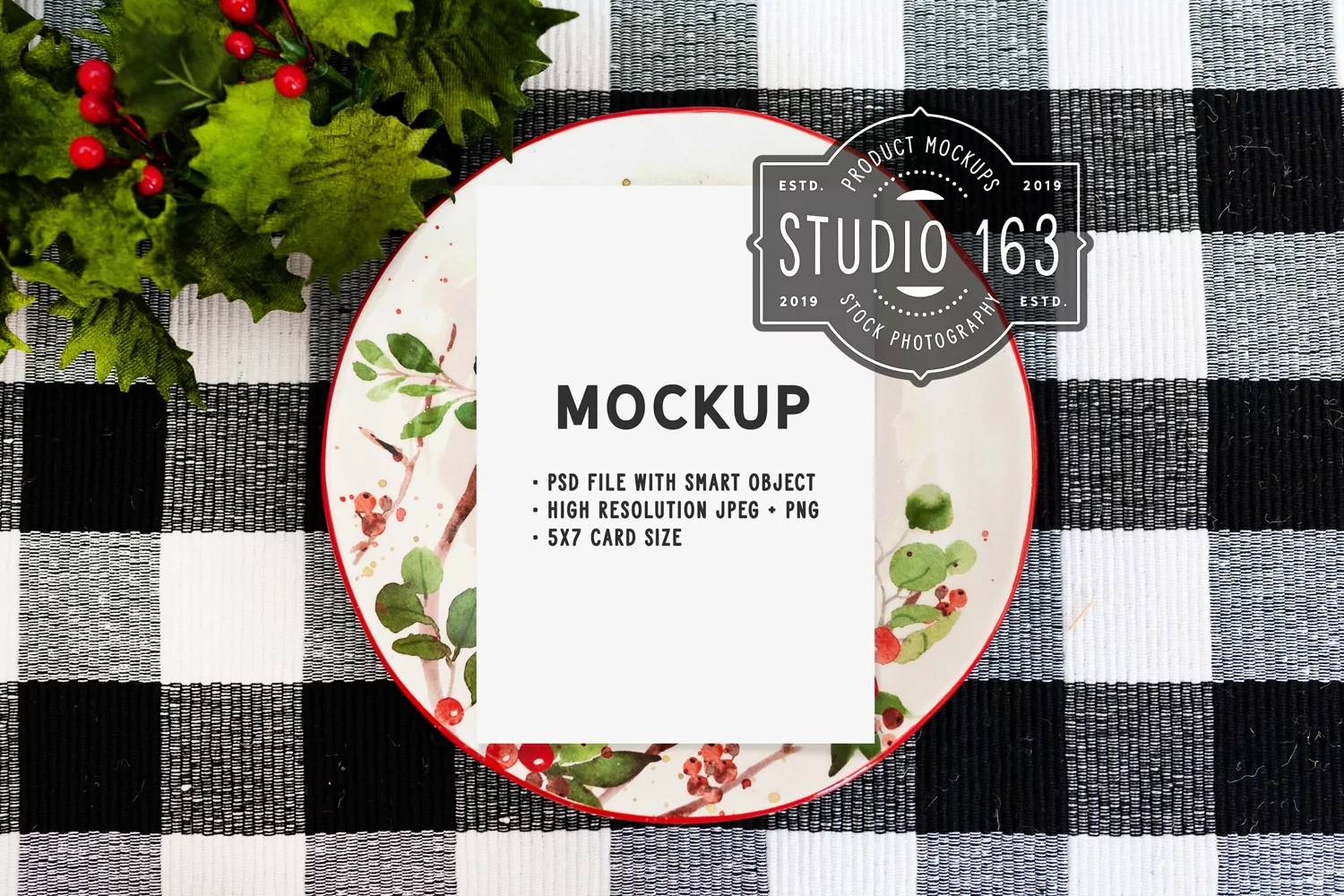 5x7 Blank Card Mockup, Christmas Stationery Mockup, PSD JPG