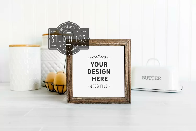 5x5 Farmhouse Sign Mockup | Mitered Wood Sign Mockup