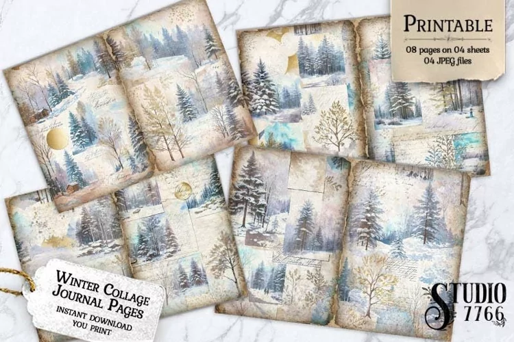 Floral Pages Vintage Journal Shabby Junk Journal Printable Junk Journal Winter Collage Vintage Diary Floral Junk Journal Collage Junk Journal Winter Junk Journal Winter Collage Junk Journal Pages