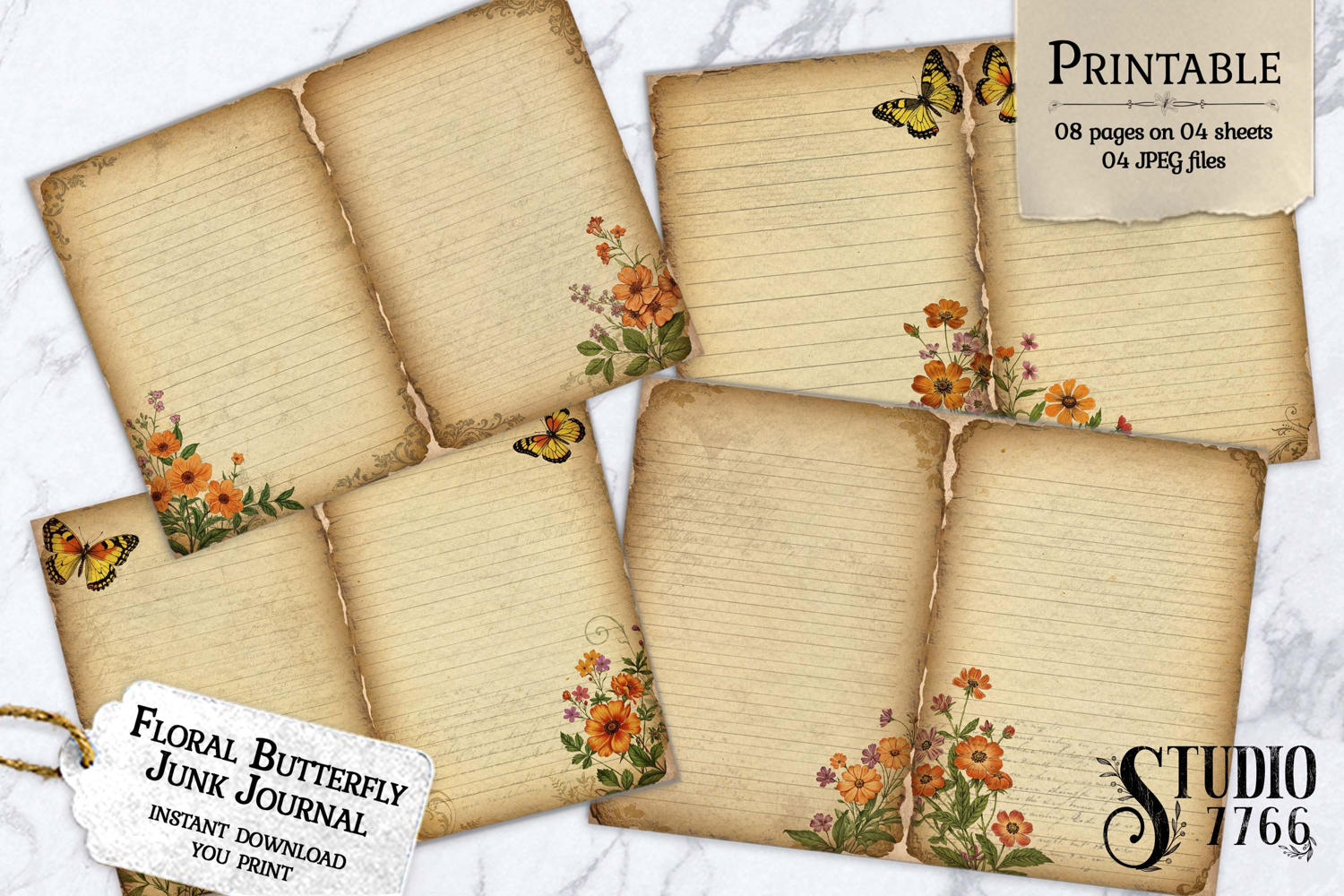 Floral Butterfly Collage Shabby Chic Botanical Framed Vintage Floral Diary Nature Old Diary Vintage Botanical Naturalist Botanic Moths Leaves Herbarium Junk Journal Papers Postcards