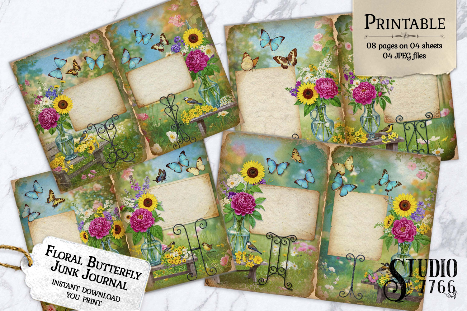 Floral Butterfly Collage Shabby Chic Botanical Framed Vintage Floral Diary Nature Old Diary Vintage Botanical Naturalist Botanic Moths Leaves Herbarium Junk Journal Papers Postcards