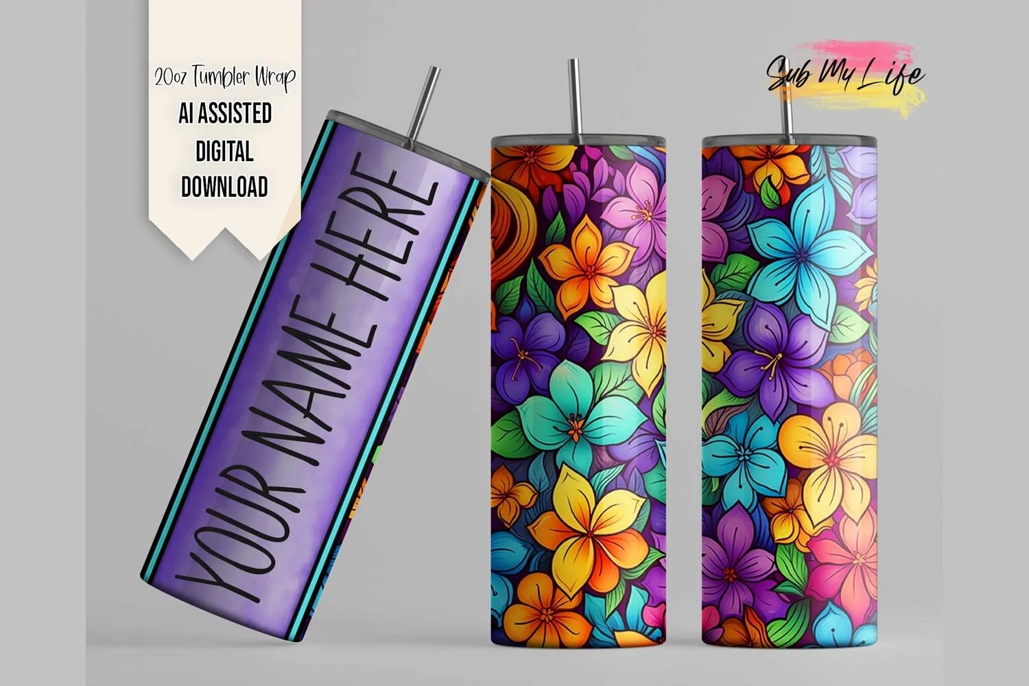 Vibrant Flowers Full Wrap For Tumbler 20oz Straight Tumbler Wrap Tropical Flower Tumbler Digital Design For Tumbler 3d Flower Tumbler Elegant Floral Tumbler Flower Lover Tumbler Design Tumbler Design For Gardeners 3d Pink Daisy Tumbler