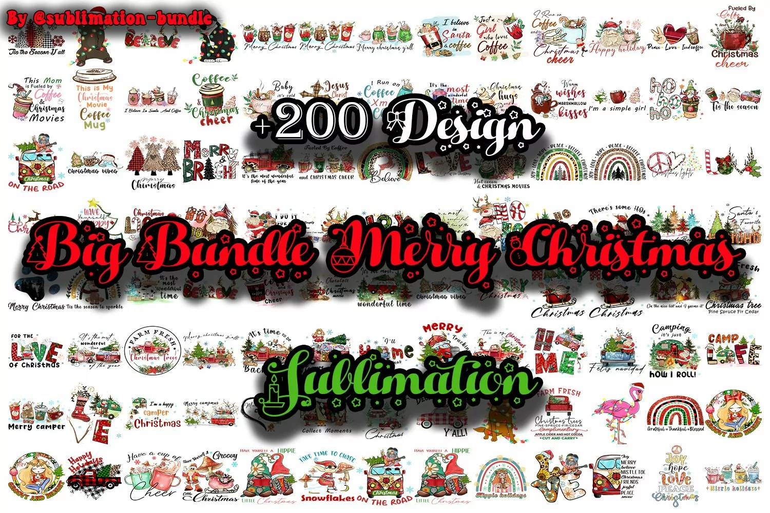 Big Bundle Merry Christmas Sublimation, Christmas Bundle PNG