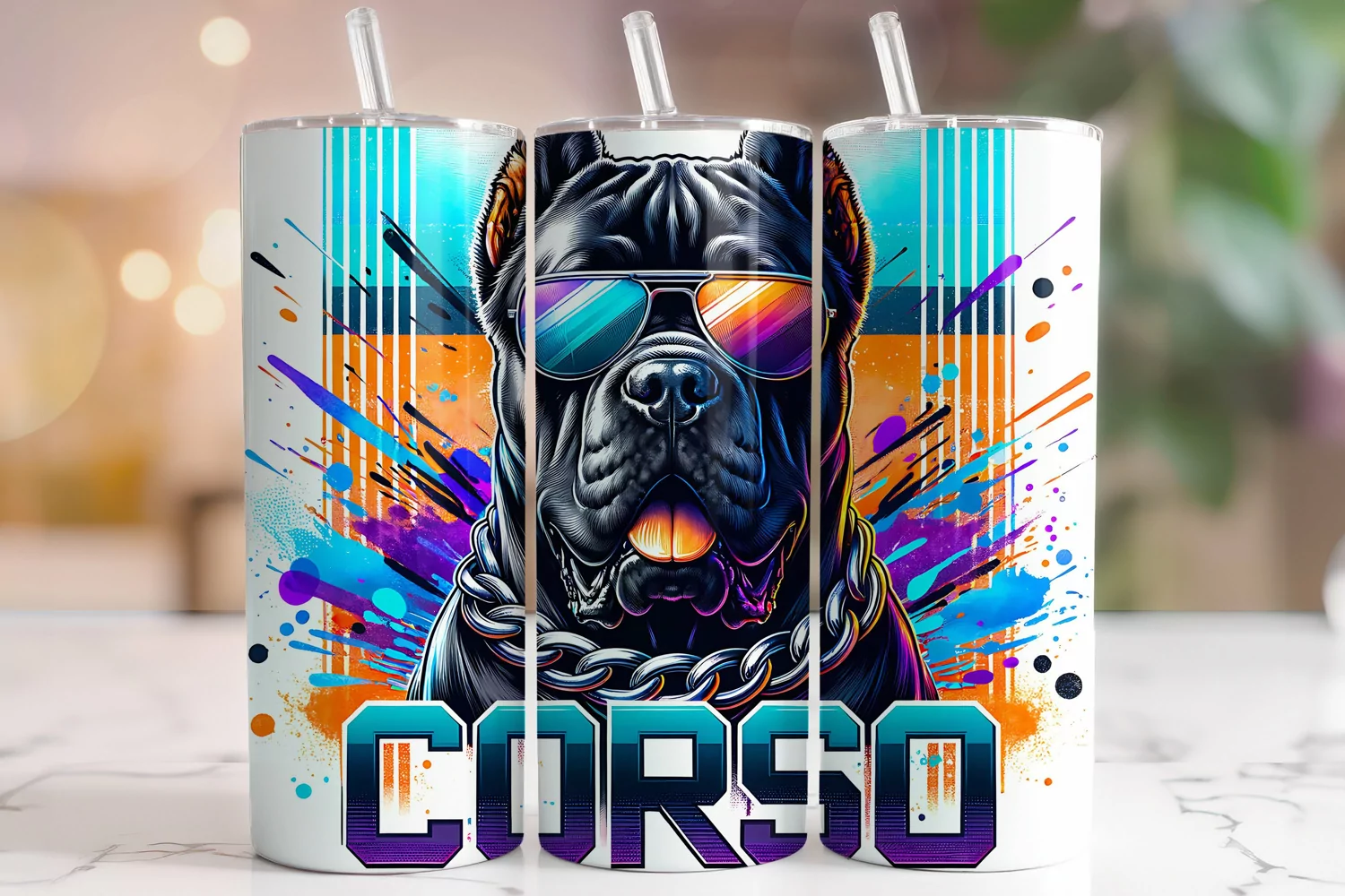 20 Oz Skinny Cane Corso Tumbler Wrap Sublimation Design