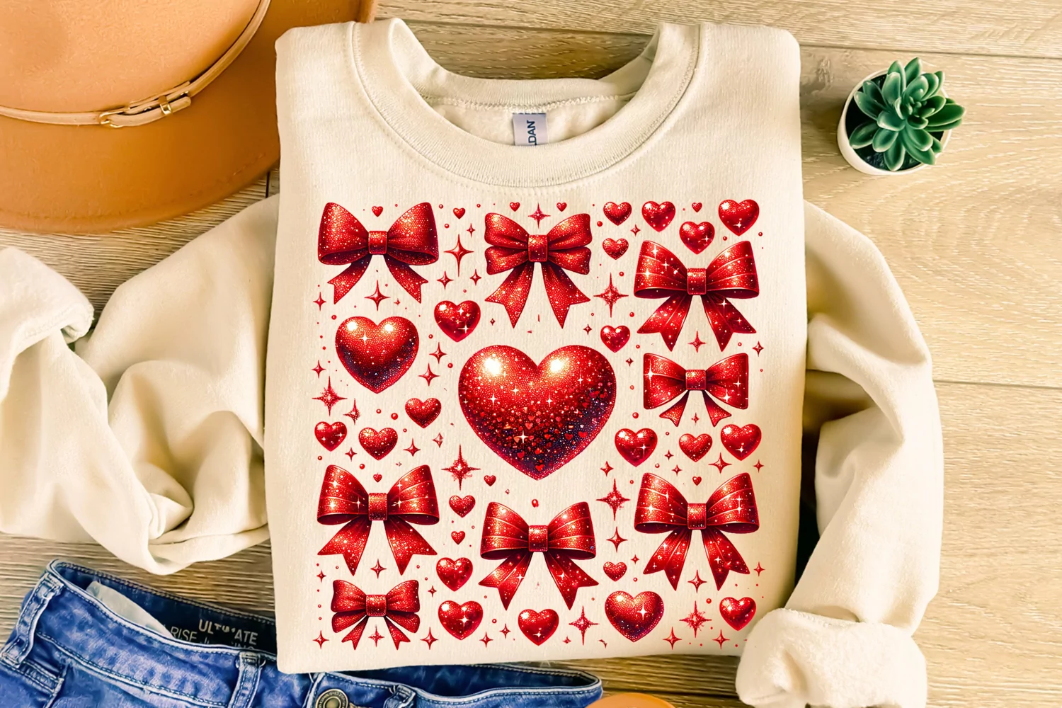 Similar Design Products to Valentine's Day Glitter Coquette Bow PNG, Valentine's Hearts