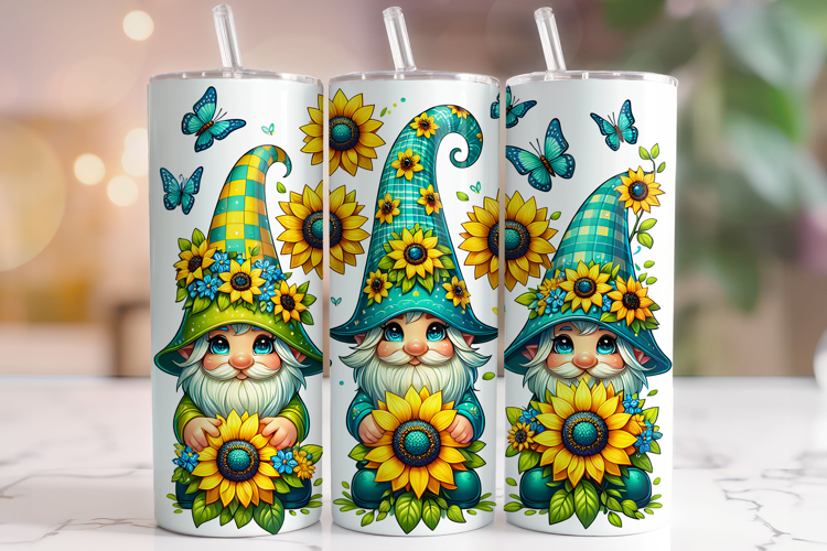 20 Oz Skinny Sunflowers Gnomes Tumbler Wrap Sublimation Design