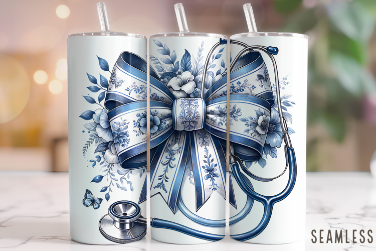 Nurse Chinoiserie Coquette Bow Tumbler Wrap Sublimation PNG