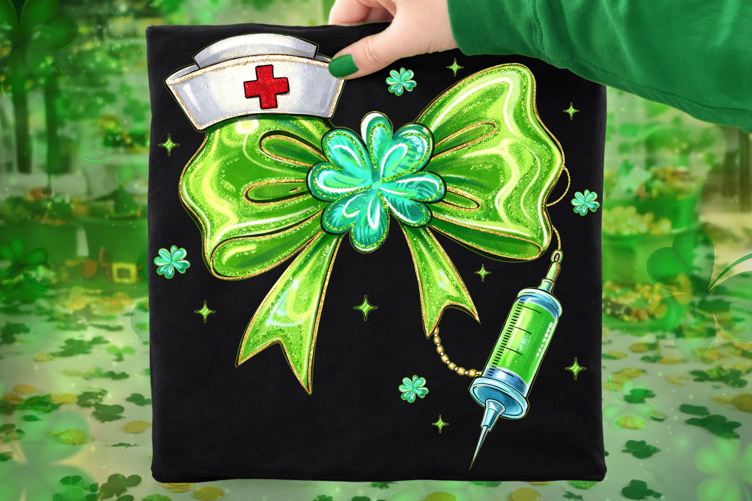 St Patrick's Day Nurse PNG, Lucky Nurse PNG, Coquette Bow