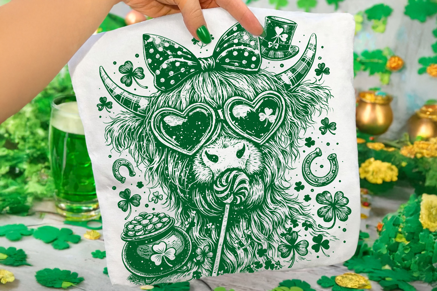 Highland Cow St Patrick's Day PNG, Lucky Day PNG, Shamrock