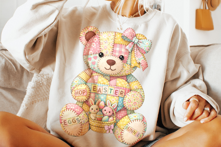 Patchwork Easter PNG, Happy Easter PNG, Easter Bear PNG example image 1