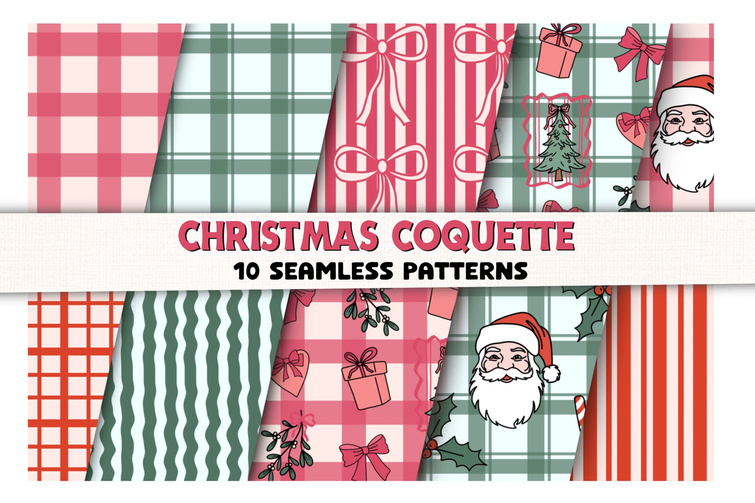 Christmas Coquette Seamless Patterns - 10 Cute Digital Paper