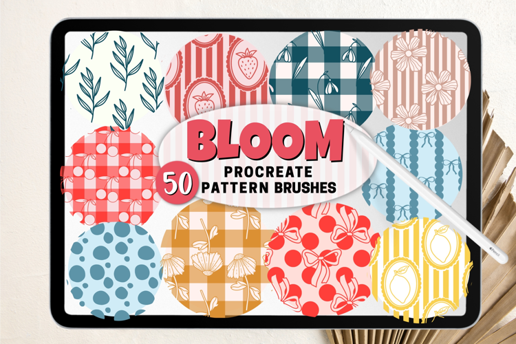 Bloom Procreate Pattern Brushes Floral Fruit Stripe Gingham