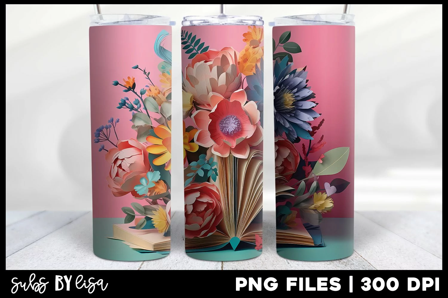 3D Floral Book Tumbler Sublimation Wrap Design example image 1