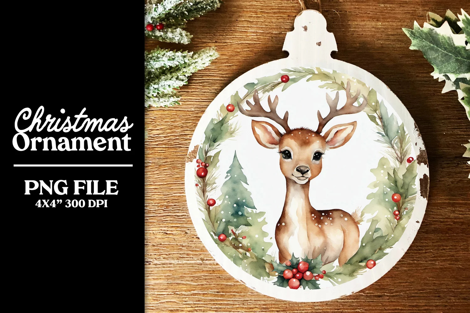 Christmas Ornament Sublimation Design Deer Baby Animal PNG example image 1