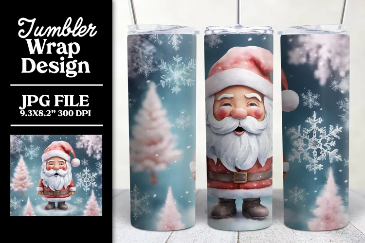 3D Christmas Sublimation Tumbler Wrap Design Santa