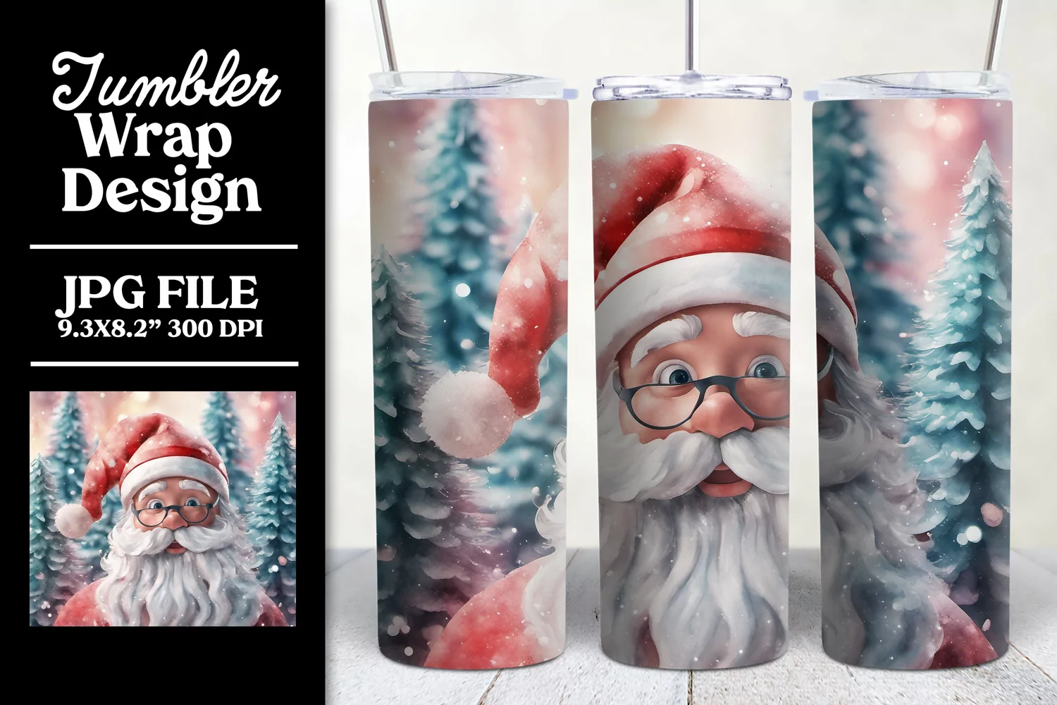 Similar Design Products to Santa Claus Tumbler Wrap Christmas Sublimation Watercolor