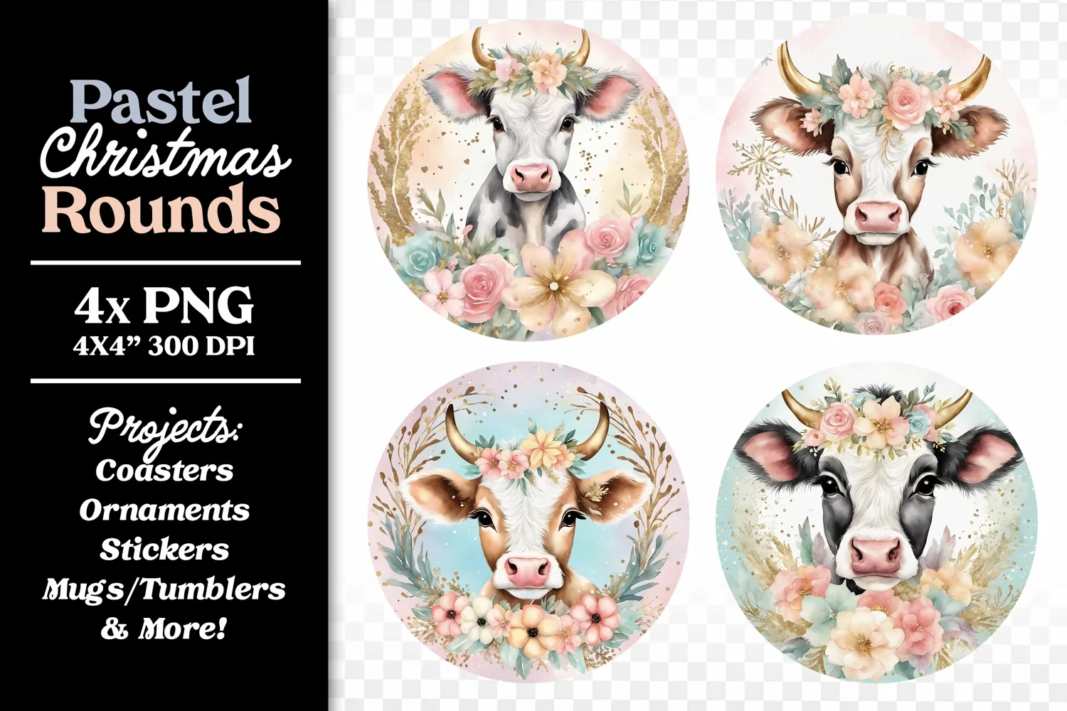 Watercolor Clipart Cow Christmas Clipart Round Ornament Christmas Watercolor Christmas Sticker Christmas Cow Watercolor Ornament Round Coaster Christmas Round