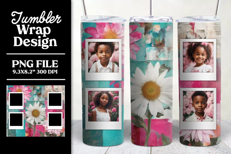 Photo Tumbler Wrap Sublimation Design Pink and Teal