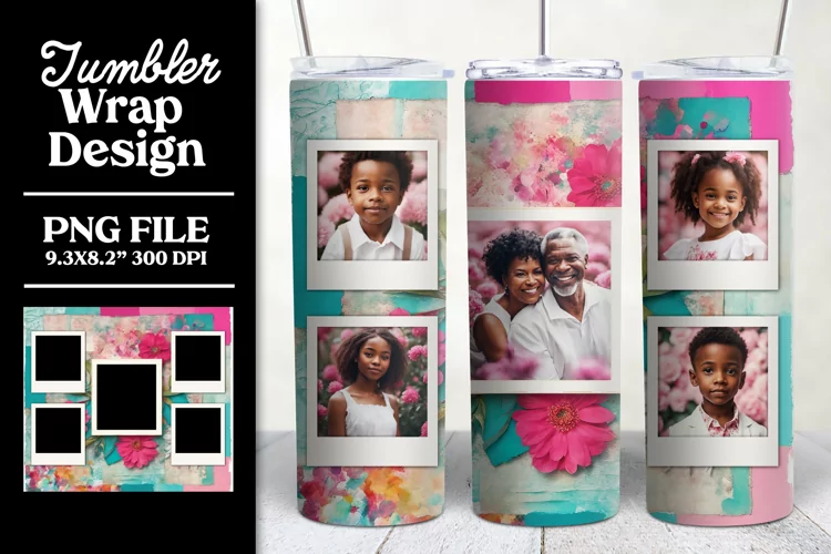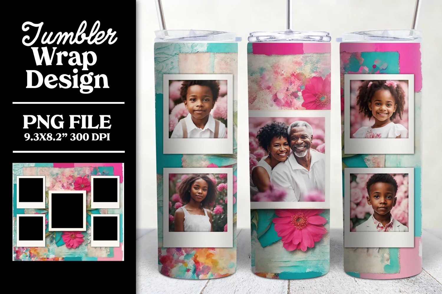 Photo Collage Tumbler Wrap Sublimation Design Floral